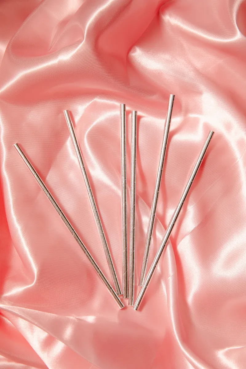 Canudos de papel, biodegradáveis, na cor prateado pra dar um toque especial pra sua festa!O pacote contém 12 unidades.*Imagens meramente ilustrativas, as cores podem variar de acordo com o monitor.*