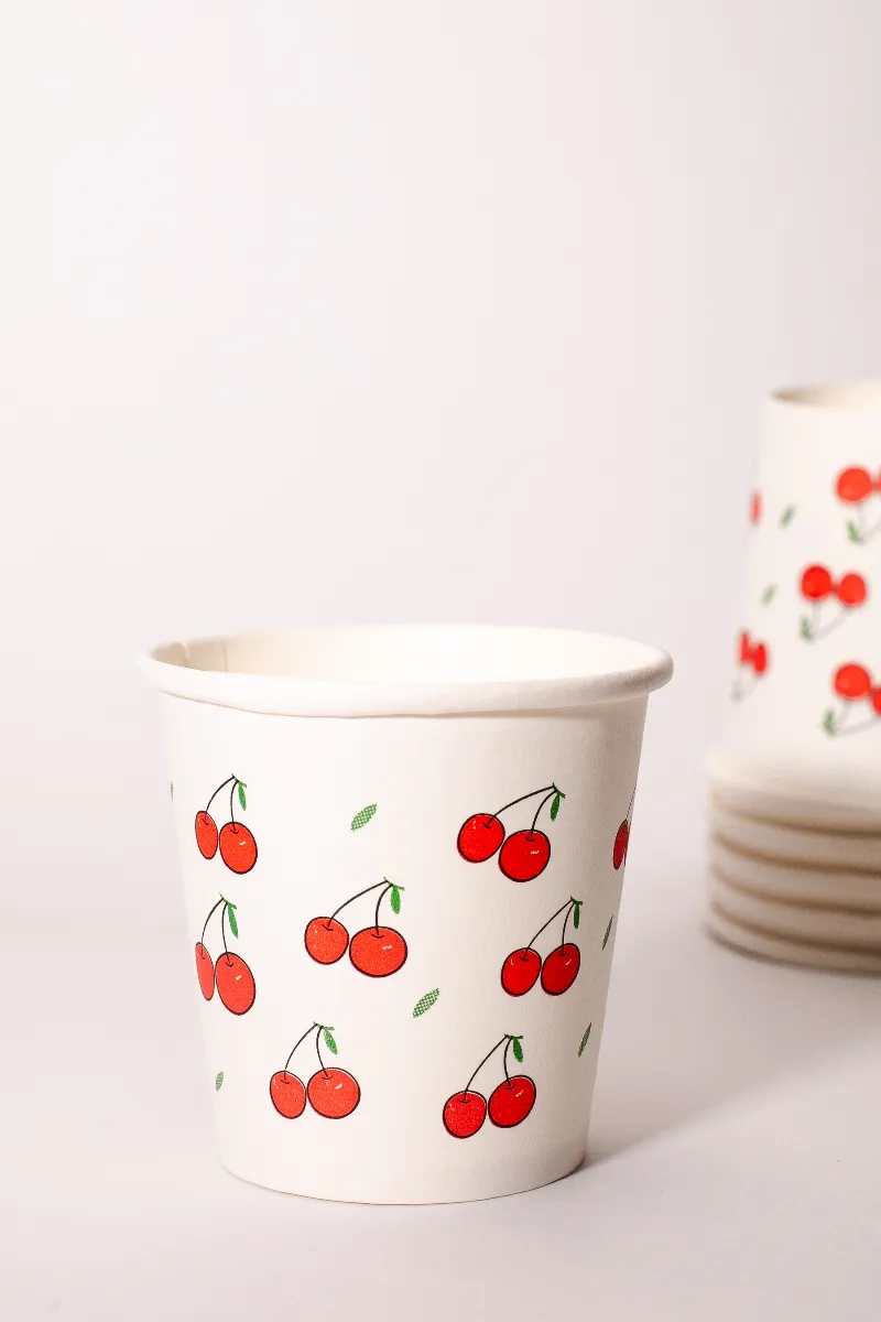 Dez unidades de copos de papel no tema cereja com capacidade para 90ml.