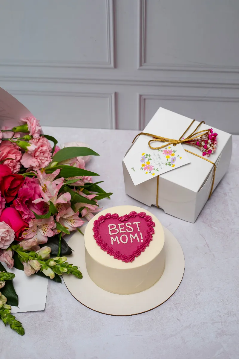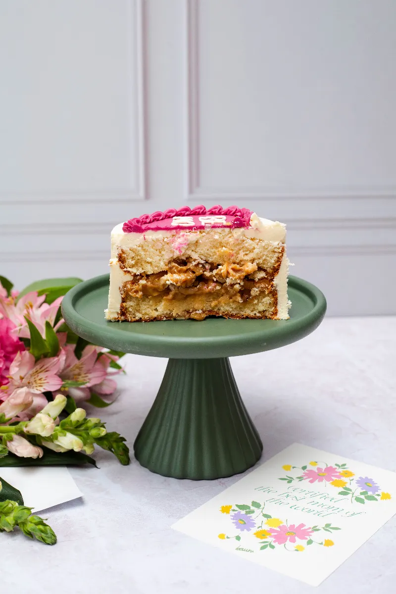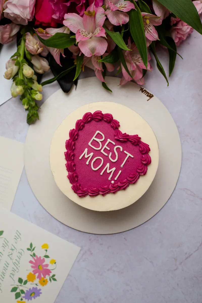 Modelo "Best Mom" da nossa linha especial de bentô cakes pra essa data tão significativa. O bolo pesa aproximadamente 400g, tem massa de baunilha e leva recheio de doce de leite com nozes.