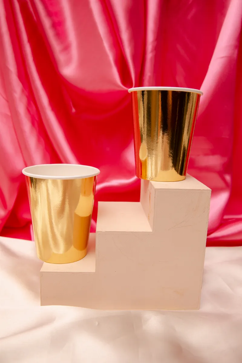 Dez unidades de copos de papel na cor dourada com capacidade para 220ml.