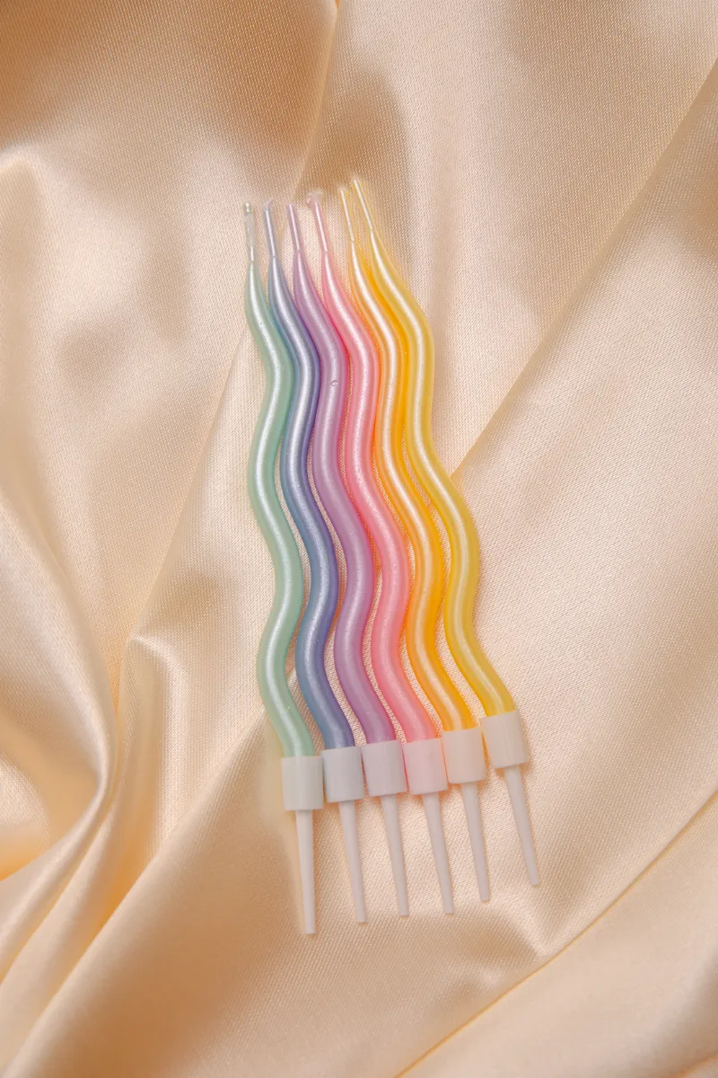 3 unidades de vela espiral em cores candy sortidas com aproximadamente 12,5cm.*Imagens meramente ilustrativas, as cores podem variar de acordo com o monitor.*