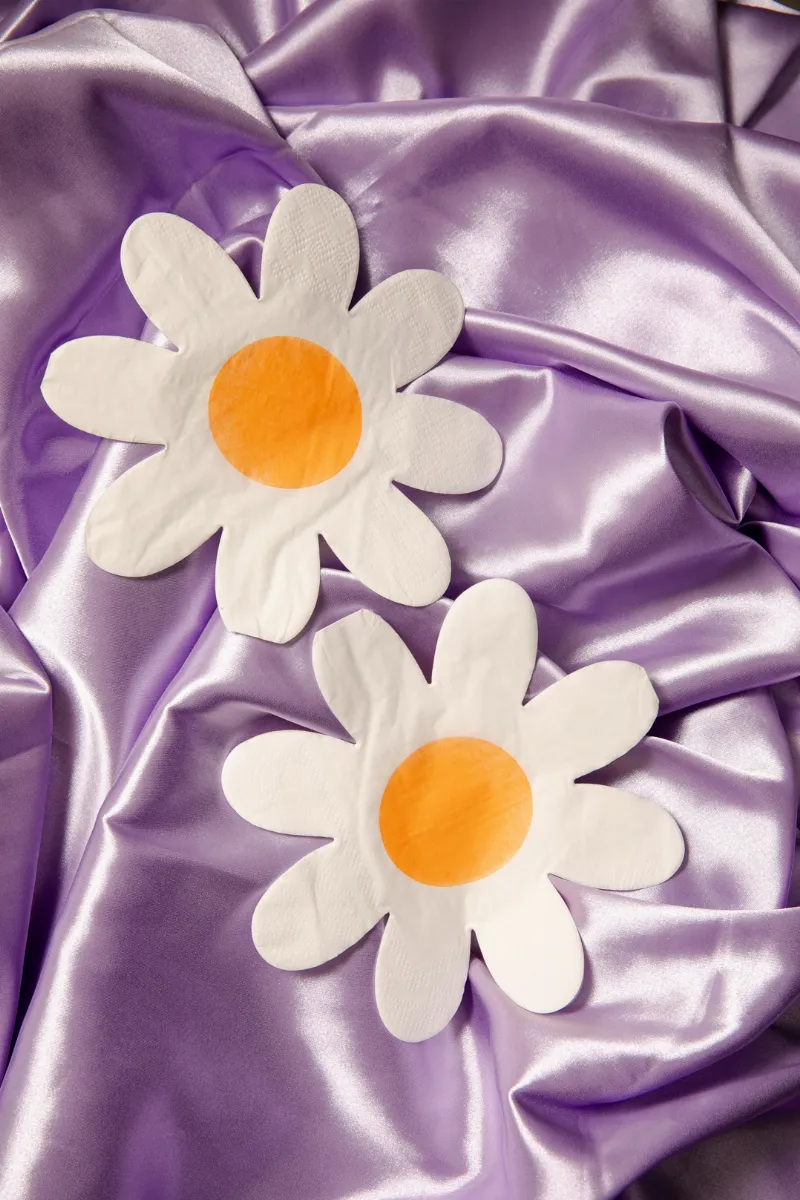 Pacote com 10 unidades de guardanapo em formato de flor na cor branca.