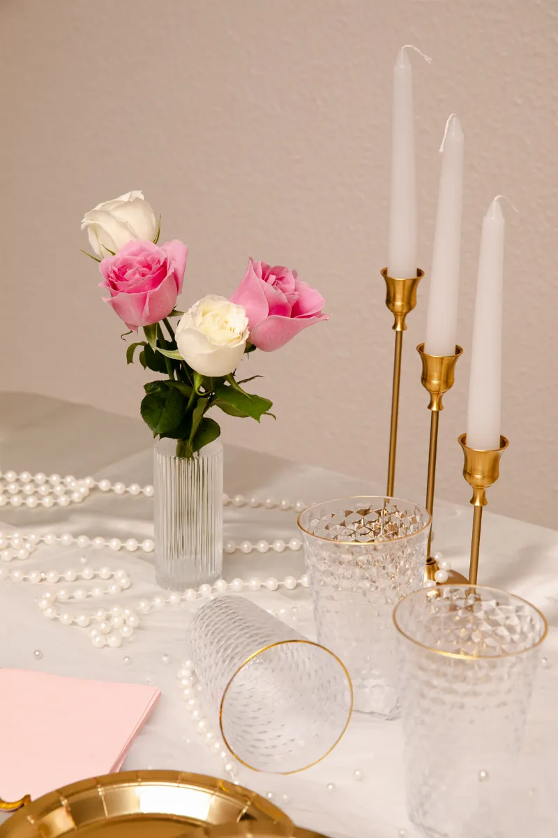 Item indispensável para quem quer montar uma mesa decorada com velas altas, laços e taças.