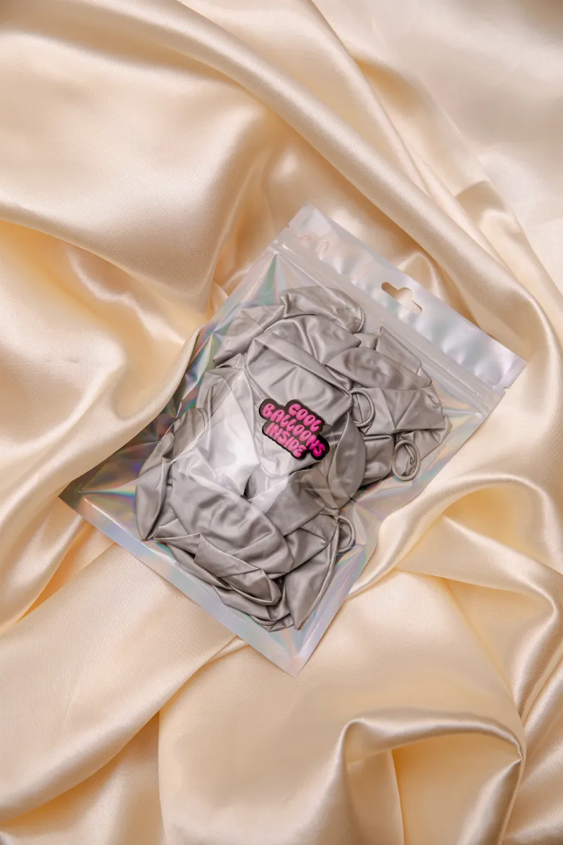 Pacote com 25 unidades da nossa bexiga icônica, metalizada, na cor prata.
