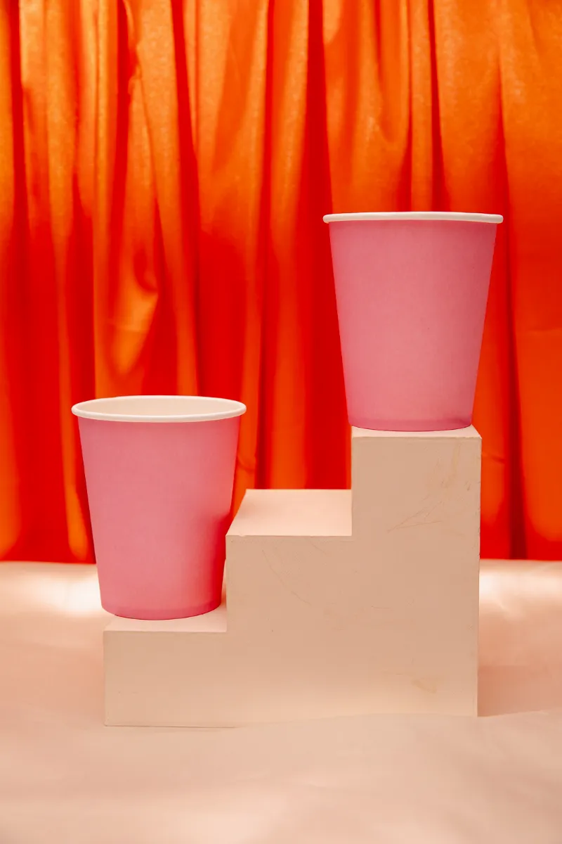 Dez unidades de copos de papel na cor rosa com capacidade para 220ml.