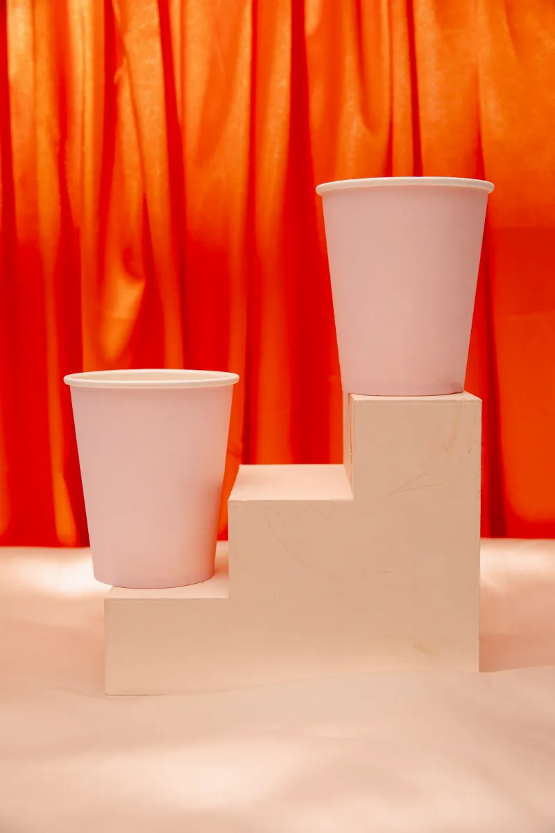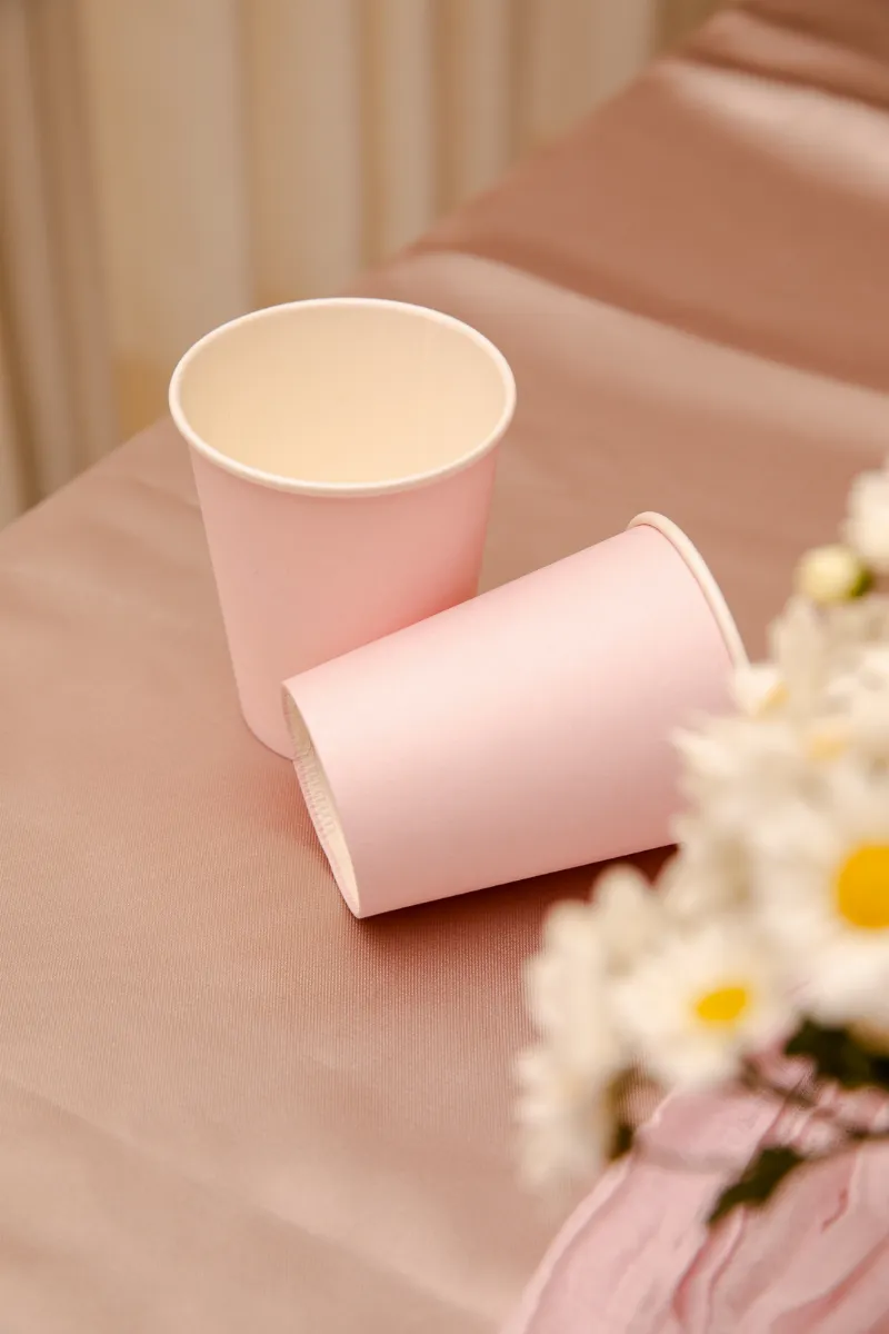 Dez unidades de copos de papel na cor rosa bebê com capacidade para 220ml.