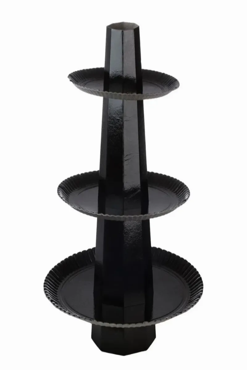 Uma unidade de baleiro na cor preta, com três andares. É um item prático para decorar e organizar seus docinhos.