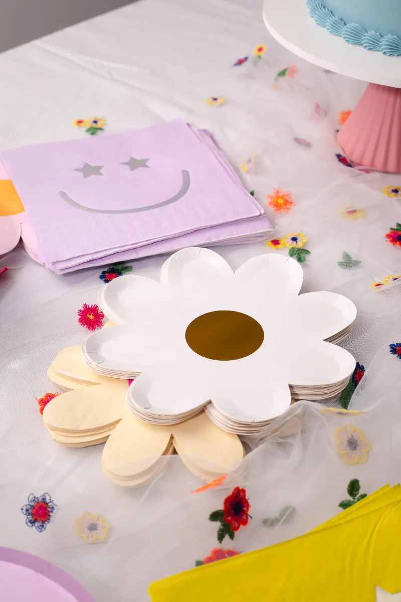 10 pratos no formato de margarida na cor branca pra você montar a decoração perfeita pra sua festa!