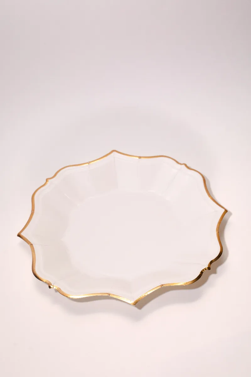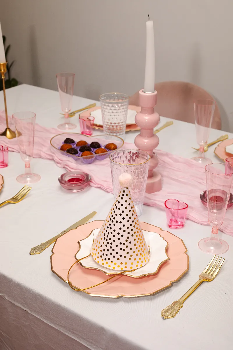 A borda dourada traz um toque ainda mais delicado para a sua festa e completa a decoração da mesa.