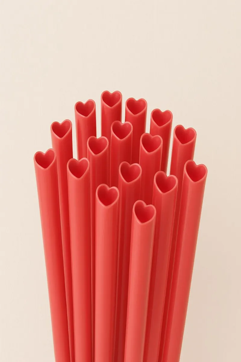 Quinze unidades de canudos vermelhos em formato de coração para deixar sua festa com um ar romântico e fofo!