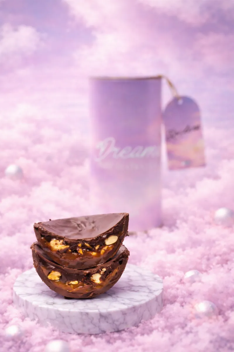 Casca de chocolate ao leite com ganache de chocolate, caramelo e amendoim. Pesa 400g.